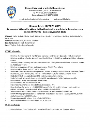 Komuniké č.: K8/2025-2029 ze zasedání Výkonného výboru KFS KHK
